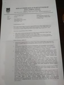 13 orang Legislator DPRD kota Tebingtinggi tandatangani surat “Mosi Tidak Percaya” dan melayangkannya ke pimpinan ketua DPRD Kota Tebingtinggi Basaruddin Nasution pada Rabu (05/02/2020)