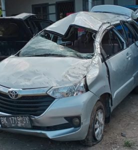 ” Telah terjadi kecelakaan Tunggal, satu unit mini bus Toyota Avanza Nopol BK 1713 JY yang datang dari arah Kisaran menuju Medan dengan kecepatan sedang tiba tiba oleng ke kanan, hingga lepas kendali dan Mobil terbalik / terguling keberam badan jalan sebelah kanan” jelas Kasatlantas melalui WhatsApp