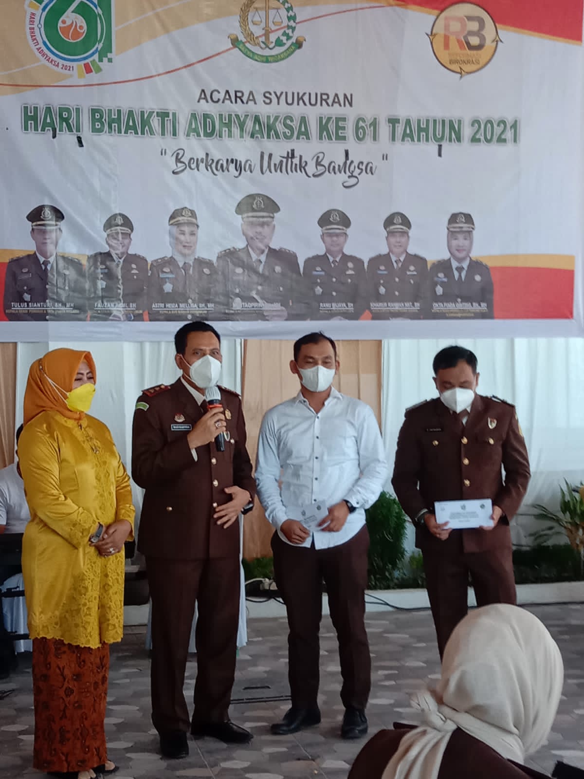 “Saya Mengucapkan Syukur Alhamdulillah, Acara Hari Adyaksa Darmakarini ke-21 kemarin tanggal 21juli secara Virtual dengan Jaksa Agung, dan hari ini Peringatan hari Bakti Adyaksa ke 61, 22 Juli Sukses di gelar” ucapnya