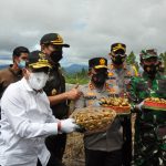 Menko Marves langsung meninjau lokasi irigasi tetes penanaman Bawang Putih yang dilakukan oleh PT Parna Raya, perkembangan Food Estate di Kecamatan Pollung, mengikuti panen kentang yang disediakan oleh PT Indofood, dan melakukan dialog dengan para petani.