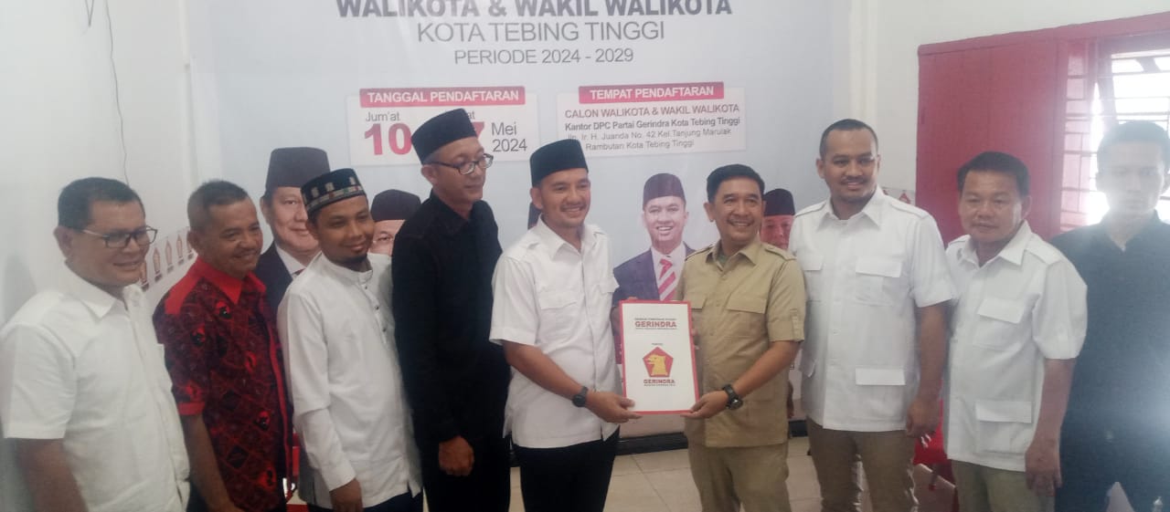 Setelah mendaftarkan diri di Kantor DPC PDI Perjuangan, Partai Demokrat, Partai PPP, Partai Hanura dan Partai PKS, Iman Irdian Saragih, SE kembali mendaftarkan diri sebagai Bakal Calon (Balon) Wali Kota Tebing Tinggi di Kantor DPD Partai Perindo dan DPC Gerindra, Senin (13/5/2024).