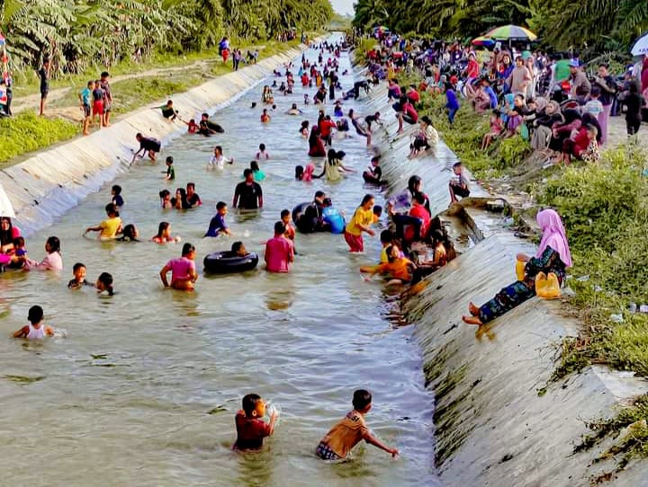Sumatra Utara, Tebing Tinggi|Saluran Irigasi di desa kuta Baru, kecamatan Tebing Tinggi, kabupaten Serdang Bedagai ramai di kunjungi warga, kedatangan warga ini adalah untuk mandi dan bermain-main air.
