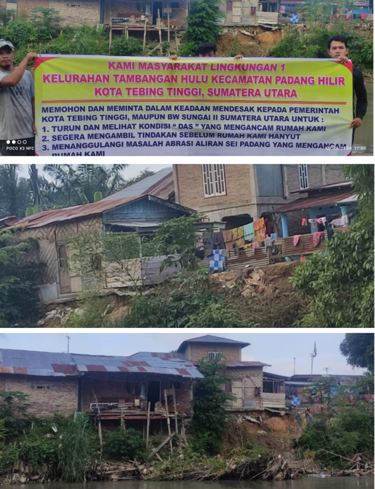 Gi-media.com. Tebingtinggi — Kian hari Kian memburuk,warga minta Pemerintah Serius perhatikan kondisi bantaran Sungai yang Erosi di wilayah aliran sungai padang tepat di kelurahan Tambangan hulu kecamatan Padang hilir kota Tebingtinggi Sumatera Utara