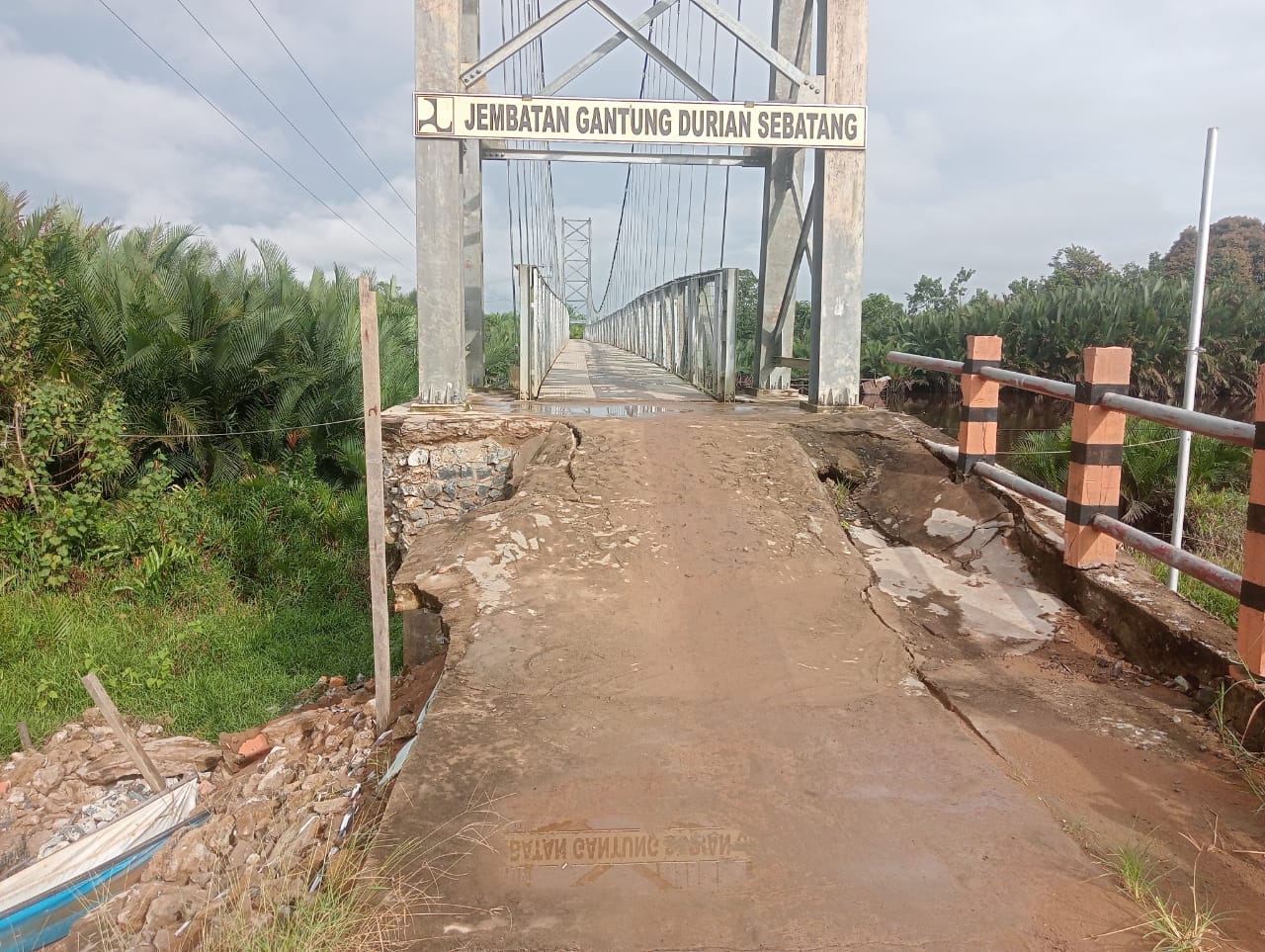 “Jembatan Gantung Durian Sebatang sungguh memprihatinkan, Kemaren malam tanggal 10 Juni 2024 sekitar pukul 08:30 WIB ada korban terjatuh, kebetulan ayah mertua saya, bahu belakang bengkak,” tutur Suby Harjo Warga Durian Sebatang saat menghubungi redaksi media ini melalui WhatsApp hari Rabu (12/06/2024).