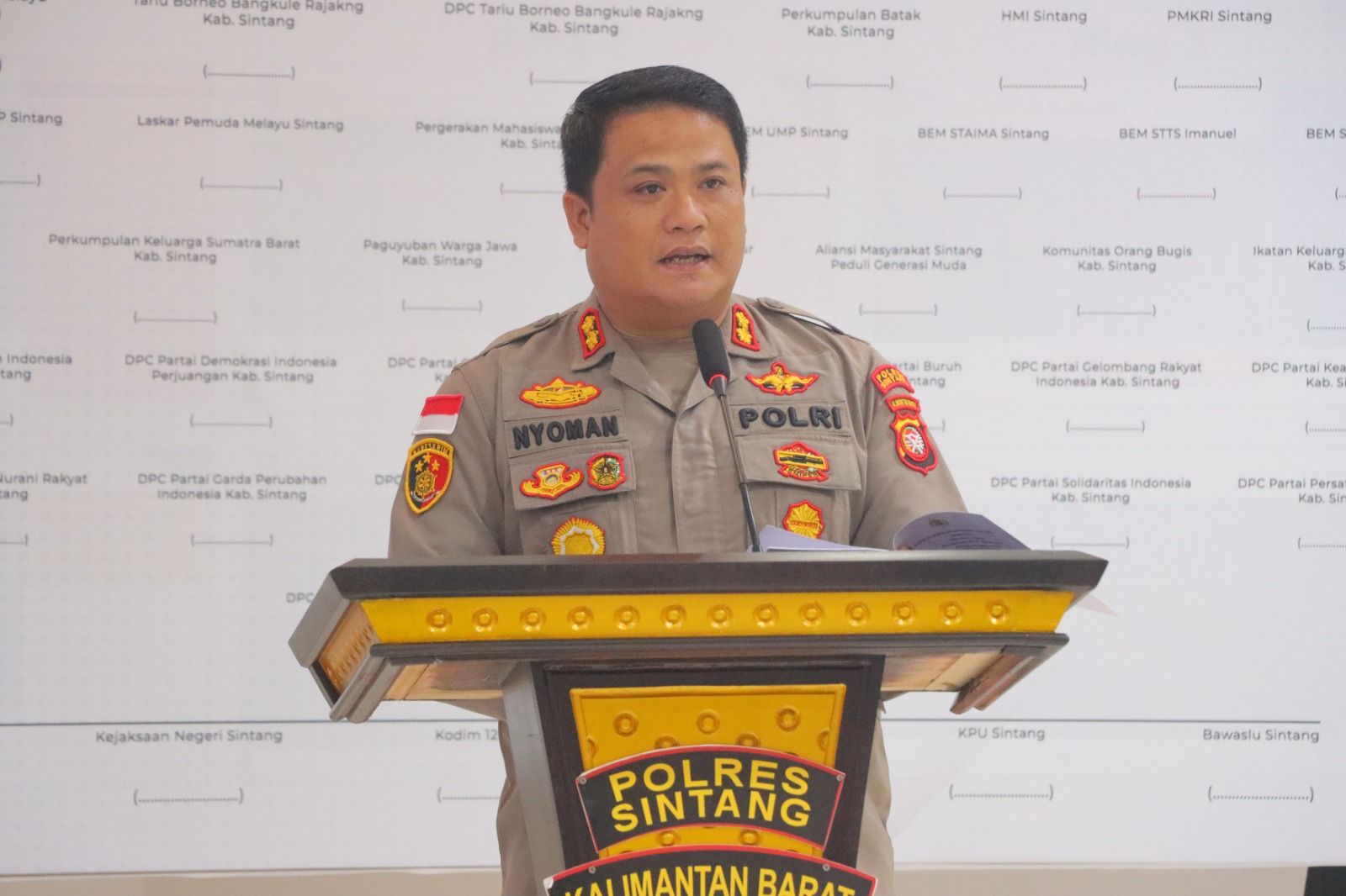 Kapolres Sintang AKBP I Nyoman Budi Artawan, S.H., S.I.K., M.M dalam sambutannya mengatakan Pemilukada merupakan tanggung jawab seluruh elemen baik dari penyelanggara hingga masyarakat sebagai peserta pemilih.