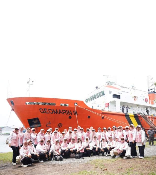 tampak rombongan Dharma Wanita Persatuan (DWP) Kementerian Energi dan Sumber Daya Mineral (ESDM). Mereka hadir untuk melihat lebih dekat Kapal Survei Geomarin III,