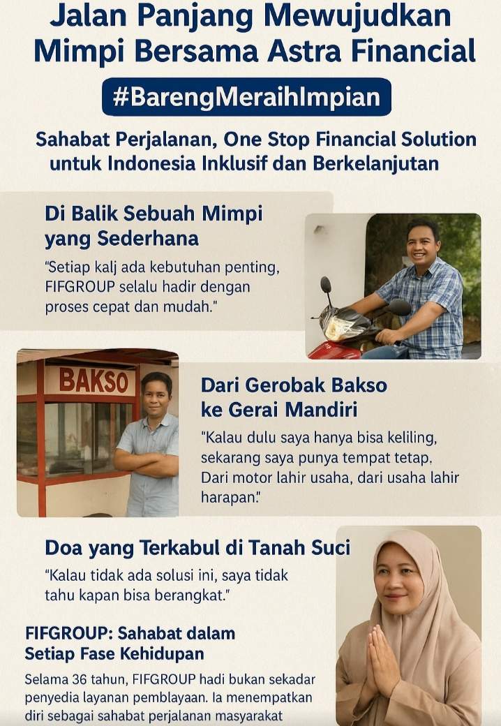 Pada akhirnya, jalan panjang mewujudkan mimpi adalah perjalanan bersama. Dan dengan semangat #BarengMeraihImpian, Astra Financial meneguhkan diri: sahabat setia dalam perjalanan menuju Indonesia yang lebih inklusif, berkelanjutan, dan penuh harapan.