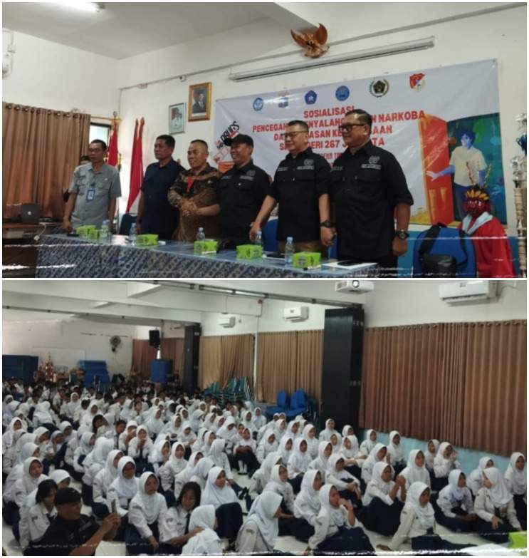 Jakarta,Gi-media.com,Dalam upaya menanggulangi bahaya penyalahgunaan narkoba sejak usia dini, Persatuan Wartawan Indonesia (PWI) Kelompok Kerja (Pokja) Wali Kota Jakarta Selatan (Jaksel) bersama Sekolah Menengah Pertama Negeri (SMPN) 267, Jakarta Selatan melaksanakan kegiatan sosialisasi bahaya narkoba dan perluasan pengetahuan wawasan kebangsaan di SMPN 267, Jakarta di kawasan Jalan Mairin Swadarma Raya, Ulujami, Pesanggrahan, Jakarta Selatan, Kamis, (16/10/2025).