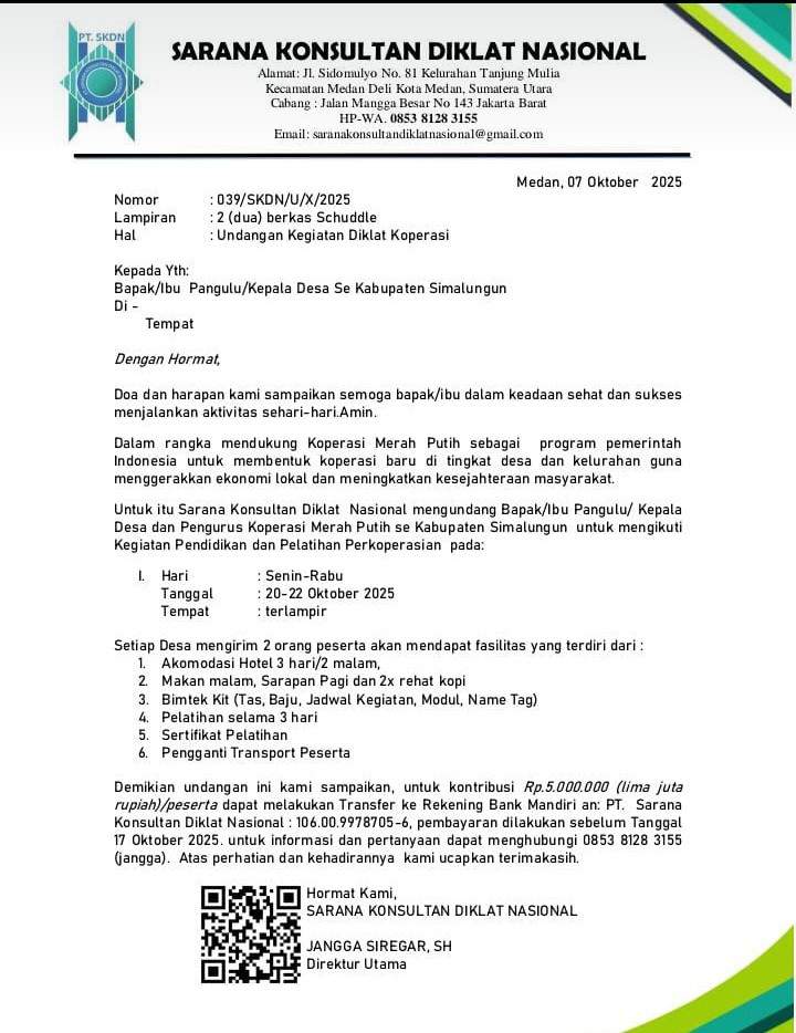 Simalungun — Undangan pelatihan yang ditujukan kepada para Pangulu (Kepala Desa) se-Kabupaten Simalungun dalam acara Diklat Koperasi Desa Merah Putih (KDMP) yang akan diselenggarakan pada 20-22 Oktober 2025,memicu reaksi keras dari publik.