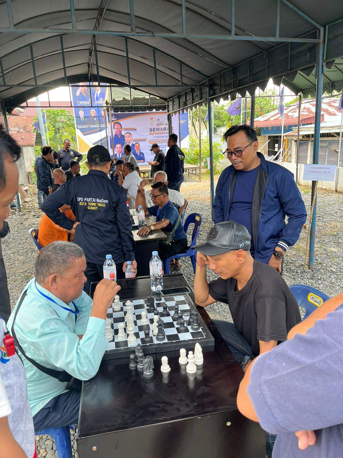Pantauan wartawan kegiatan pertandingan catur yang dilaksanakan DPD partai NasDem Tebingtinggi berjalan sengit,masing-masing kecamatan menghadirkan pemain terbaiknya, acara yang di pandu seorang juri itu berlangsung hingga malam hari