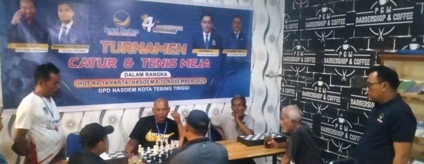Turnamen catur dalam rangka HUT ke 14 Partai NasDem hadiah dari DPD partai NasDem kota Tebingtinggi itu bertujuan mempererat silaturrahmi sesama kader menghadirkan kedekatan dengan masyarakat, yang nanti nya hadiah diserahkan pada puncak perayaan HUT ke 14 Partai NasDem pada 11 November 2025