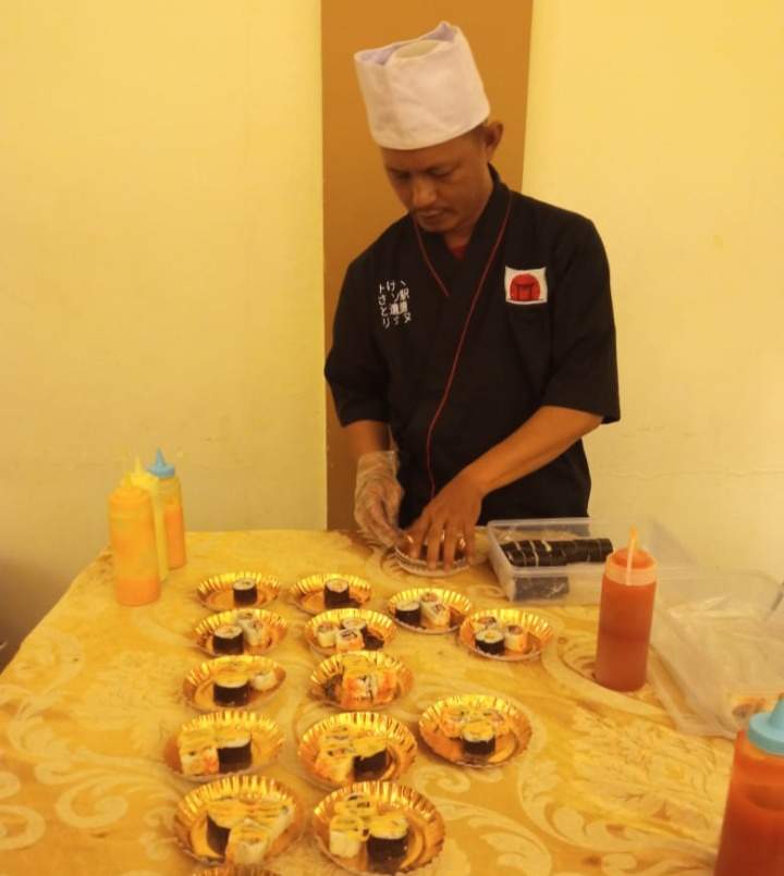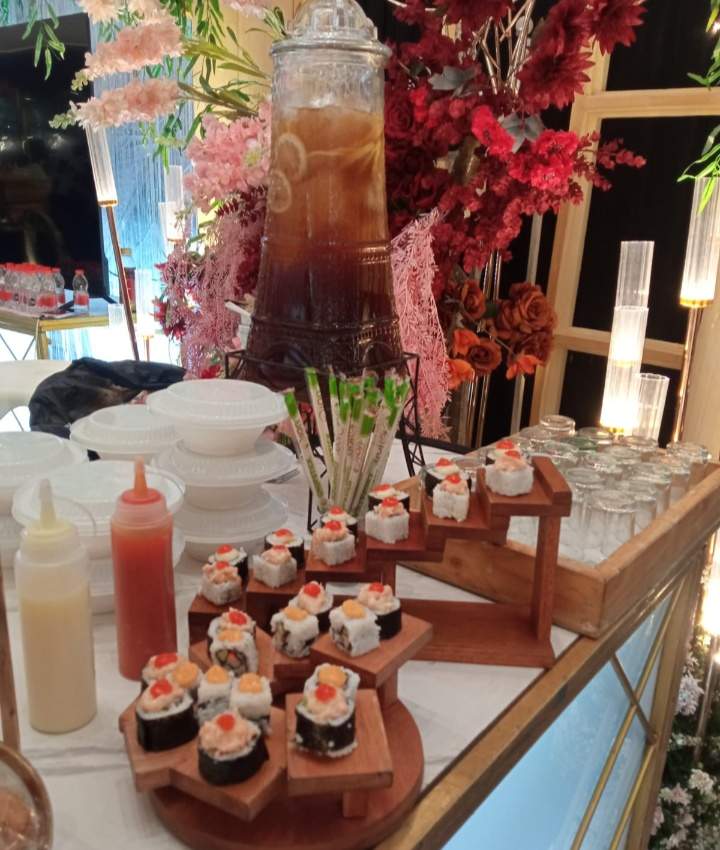 Salah satu menu yang menjadi sorotan adalah kreasi sushi mini yang cantik, disajikan dengan sentuhan dekorasi modern.