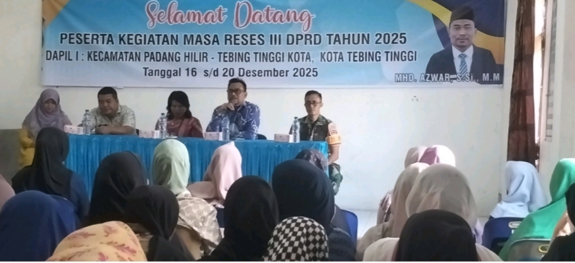 Gi-media.com — Tebingtinggi — Anggota Dewan Perwakilan Rakyat Daerah (DPRD) fraksi partai NasDem Kota Tebingtinggi H.M.Azwar S.Si.,M.M Melaksanakan Reses Ke III tahun 2025 Dapil I Padang hilir -Tebing Tinggi kota, di kelurahan Damar Sari, Menyerap Aspirasi dan Akan membawa permasalahan warga ke pemerintah untuk mencapai solusi, Reses digelar pada kamis petang (18/12/2025) sekira pukul 14:00 Wib