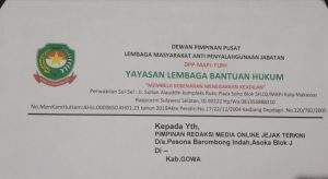 Somasi diajukan melalui Dewan Pimpinan Pusat MAPJ bekerja sama dengan Yayasan Lembaga Bantuan Hukum (YLBH) melalui perwakilan Sulawesi Selatan yang beralamat di Jalan Sultan Alauddin, Kompleks Ruko Plaza Soho SH.02, Kecamatan Rappocini, Kota Makassar.